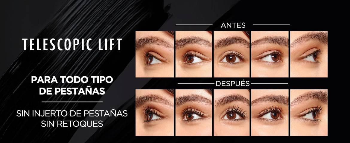 ¡Lleva tus pestañas al siguiente nivel con Telescopic Lift de L'Oréal Paris! Una mascara de pestañas que te da +5mm de alargamiento, volumen y curvatura al instante.